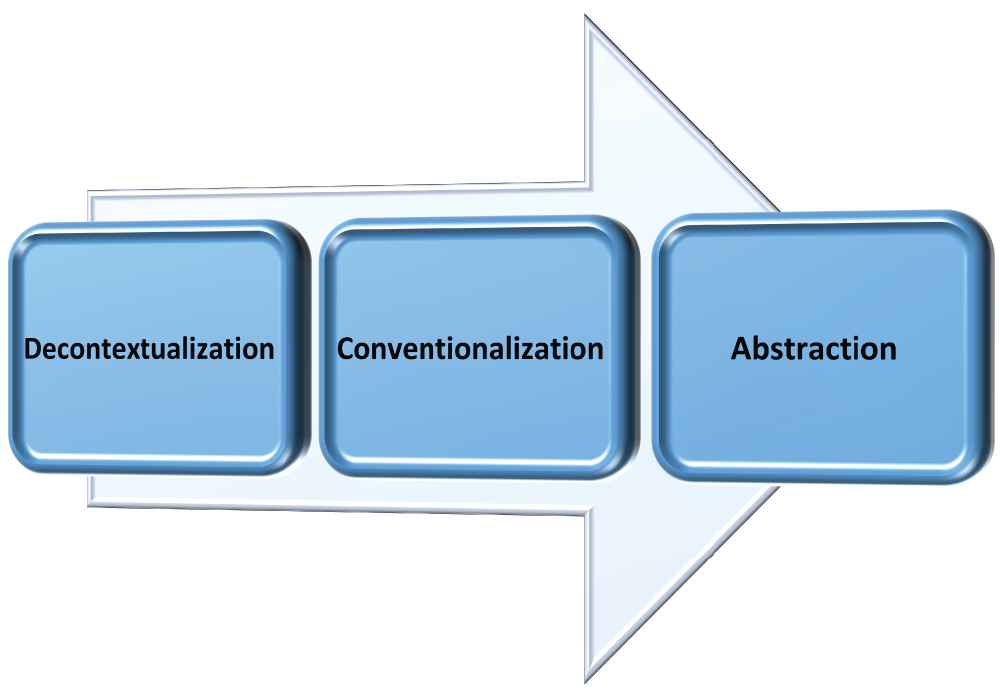 The stages are represented by de-contextualization, conventionalization, and abstraction (Fig. 1). As discussed above, the utterance goes though the three aforesaid stages.