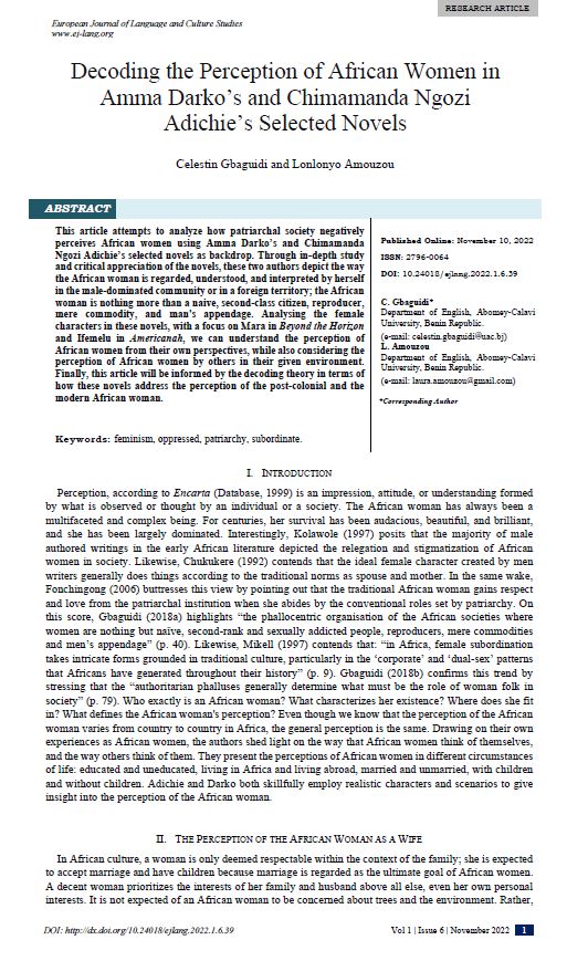Decoding the Perception of African Women in Amma Darko’s and Chimamanda Ngozi Adichie’s Selected Novels